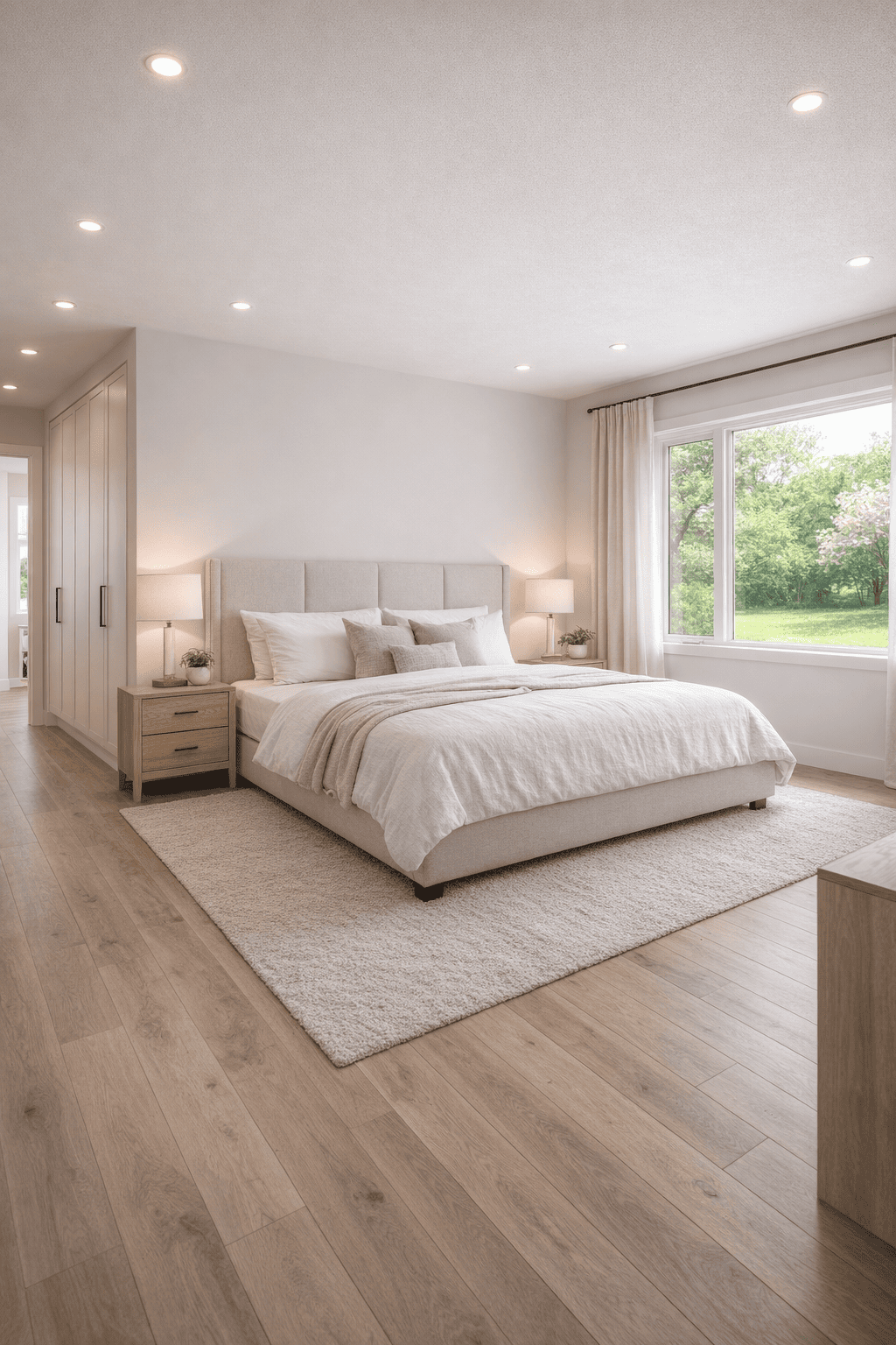 This project started with a completely unfinished home with no interior finishing. We completed a full transformation, including drywall installation, flooring, kitchen, bathrooms, lighting, and all interior details.