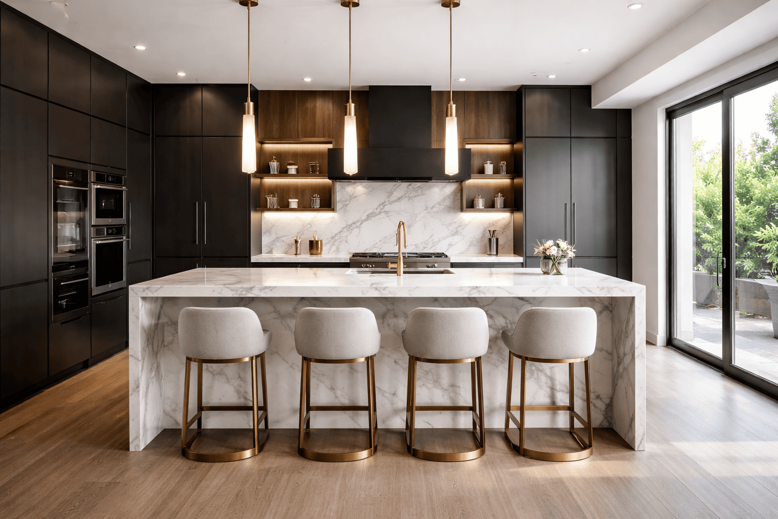 Client Goal: Luxury living space, kitchen, bedroom and bathroom.